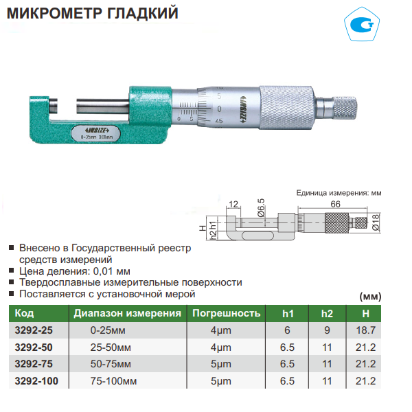 Микрометр д/изм. ступиц МК-СТ-75 0,01мм