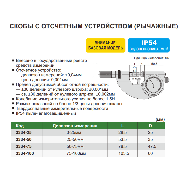 Скоба рычажная СР-100 0,001мм IP54