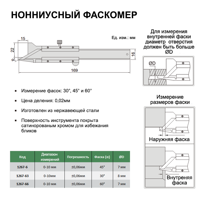 Фаскомер нониусный 0-10мм 0,02мм 30°
