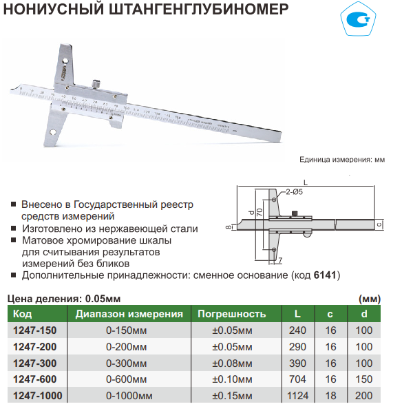 • Цена деления: 0,05мм