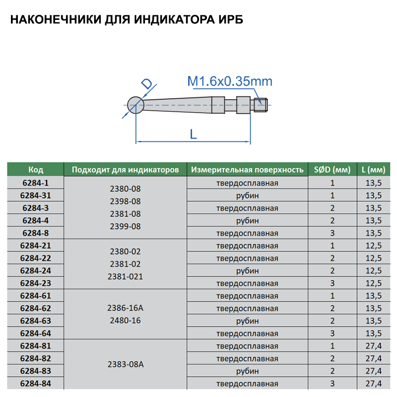 6284-31 Наконечники для индикатора ИРБ 6284-31 2 290руб.