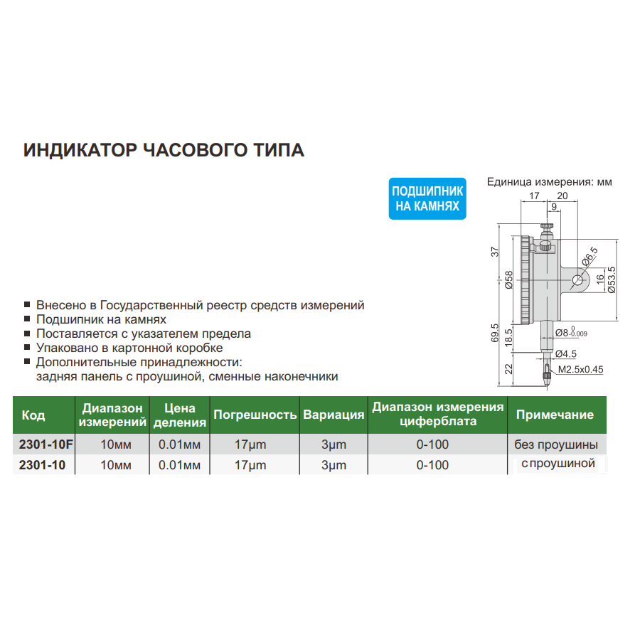 • Погрешность: 0,017мм