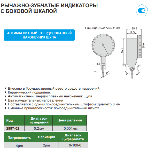Индикатор ИРБ-0,2 0,001мм, керамический подшипник