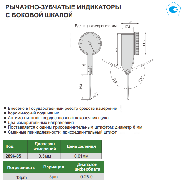 Индикатор ИРБ-0,5 0,01мм, керамический подшипник