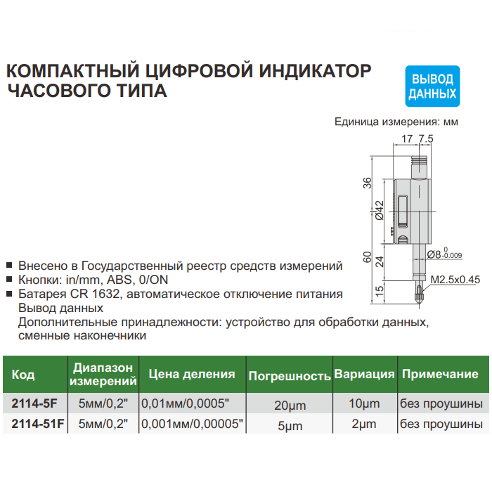 • Погрешность: 0,005мм