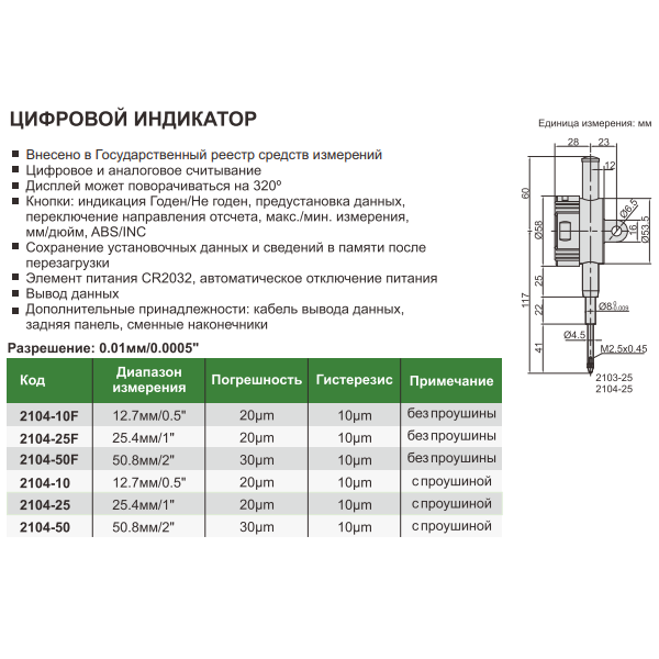 • Разрешение: 0,01мм