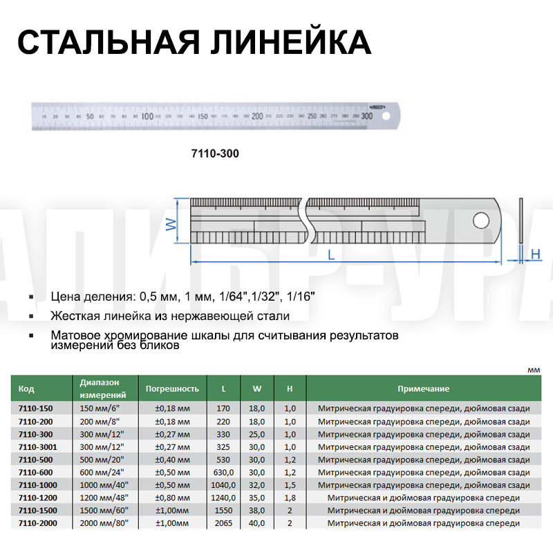 • Жесткая линейка из нержавеющей стали