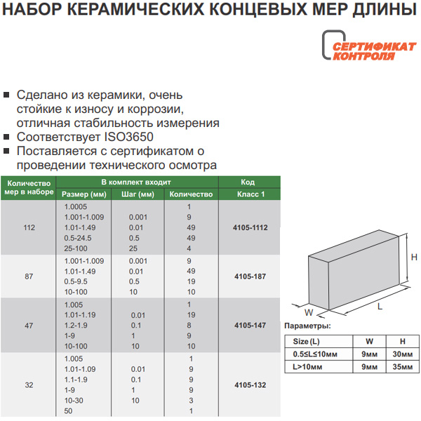 • Класс точности 1 - используются в промышленных лабораториях и на участках контроля для проверки калибр-скоб, измерения инструментов