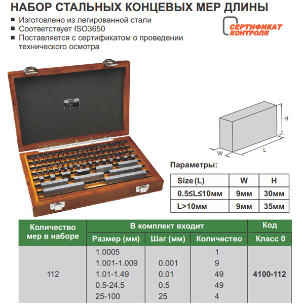 • класс 0 – содержит эталонные меры, которые используются только в контролируемой среде, как правило, для создания высокоточных измерительных приборов