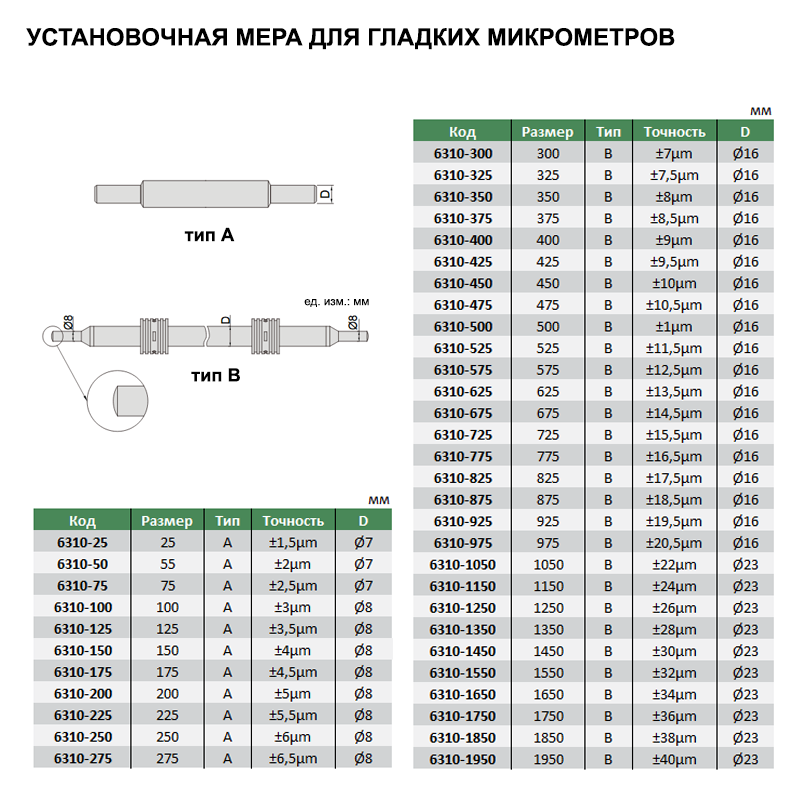 6310-525 Установочные меры для гладких микрометров тип B - 525мм 6 400руб.