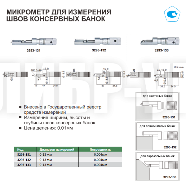 Микрометр д/изм. швов банок 0,01мм 0-13 мм (для алюминиевых банок)