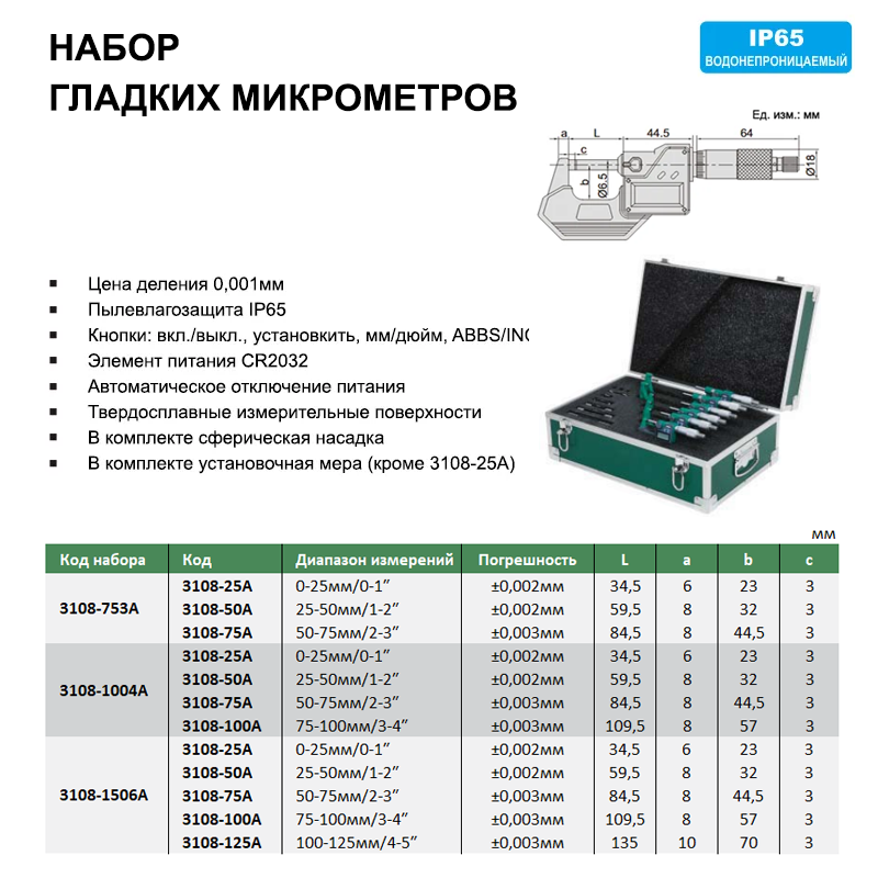 • В комплекте установочная мера (кроме 3108-25A)