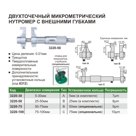 Нутромер микрометрический НМ-100 0,01 мм тип C