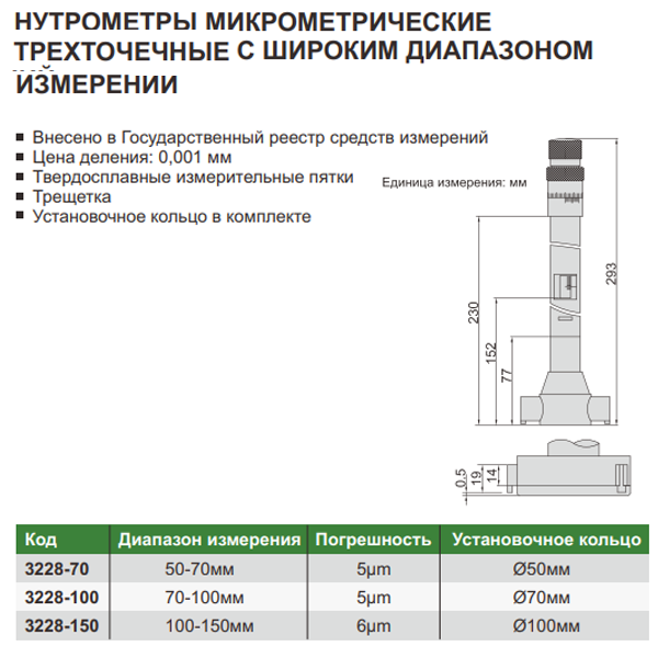 • Цена деления: 0,001мм