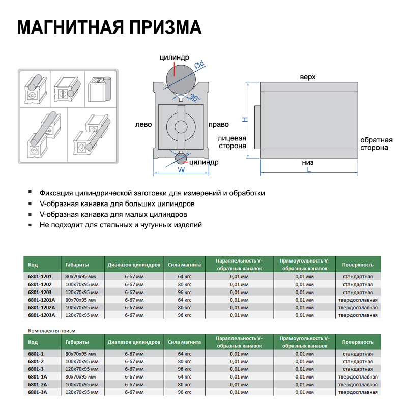 Магнитная призма 6-67мм 120х70х95 мм 96 кгс