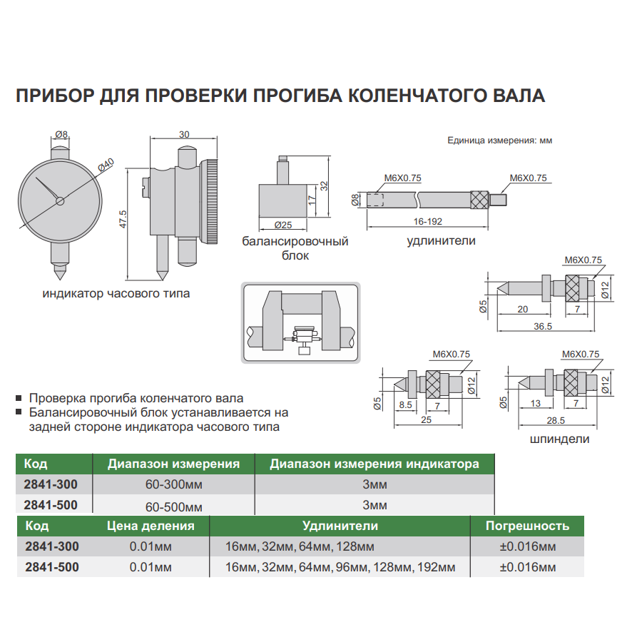 2841-50060-500мм3мм0,01мм16мм, 32мм, 64мм, 96мм, 128мм, 192мм+/-0,016мм