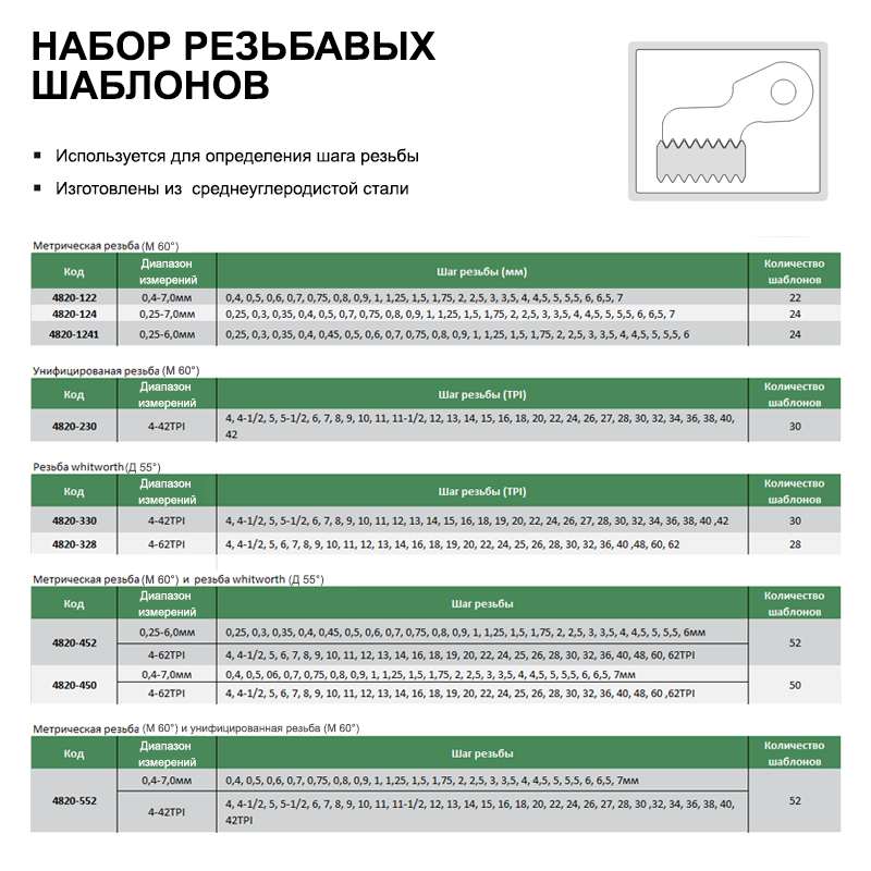 Набор резьбовых шаблонов Метрическая М60° 0,25-6,0мм