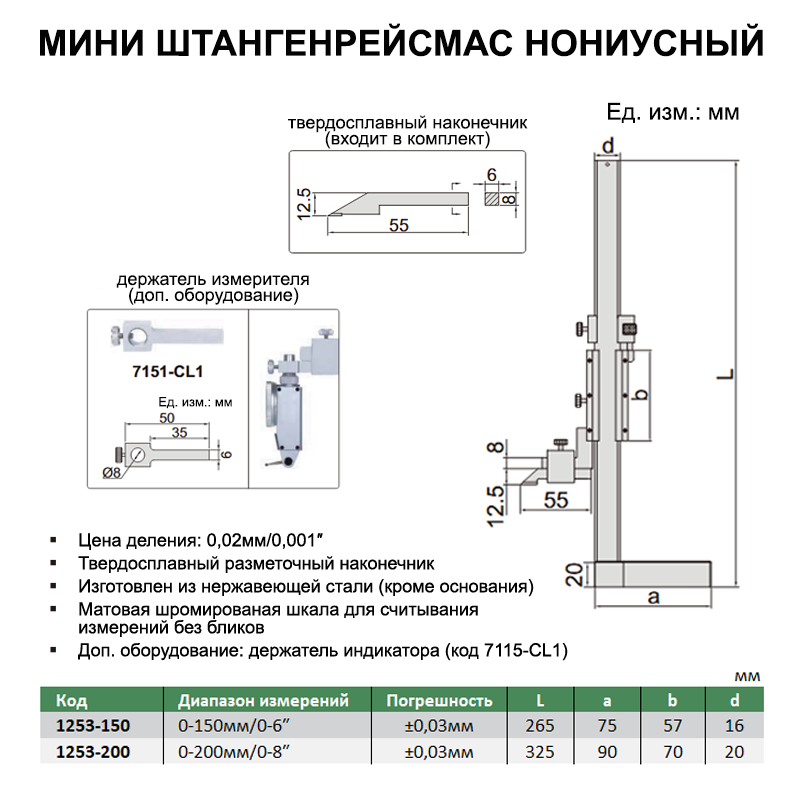 Мини нониусный штангенрейсмас ШР-150 0,02мм