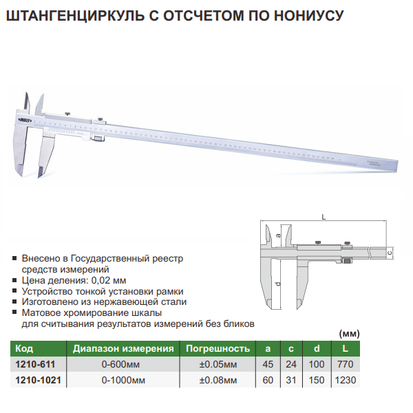 • Цена деления   0,02 мм