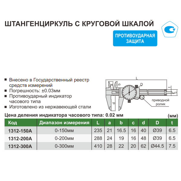 1312-150A Штангенциркуль ШЦК-1-150 0,02 мм 5 620руб.