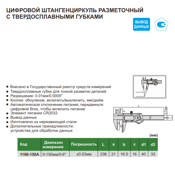 Штангенциркуль ЩЦЦРТ-1-150 0,01мм
