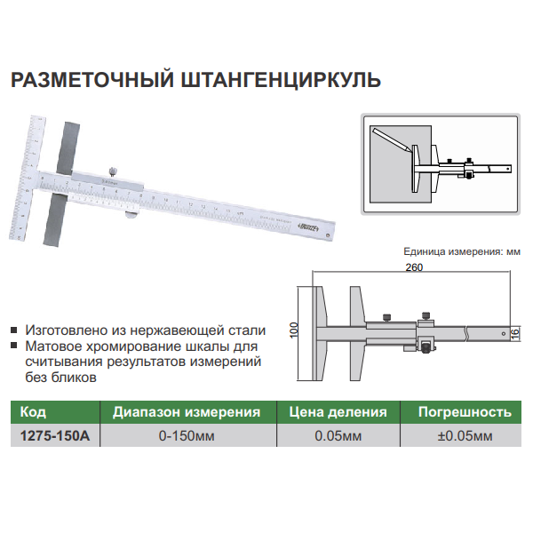 • Диапазон измерения: 0-150мм
