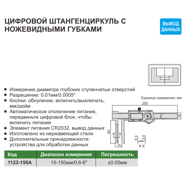 Штангенциркуль ШЦЦ-3-150 0,01 мм с ножевидными губками