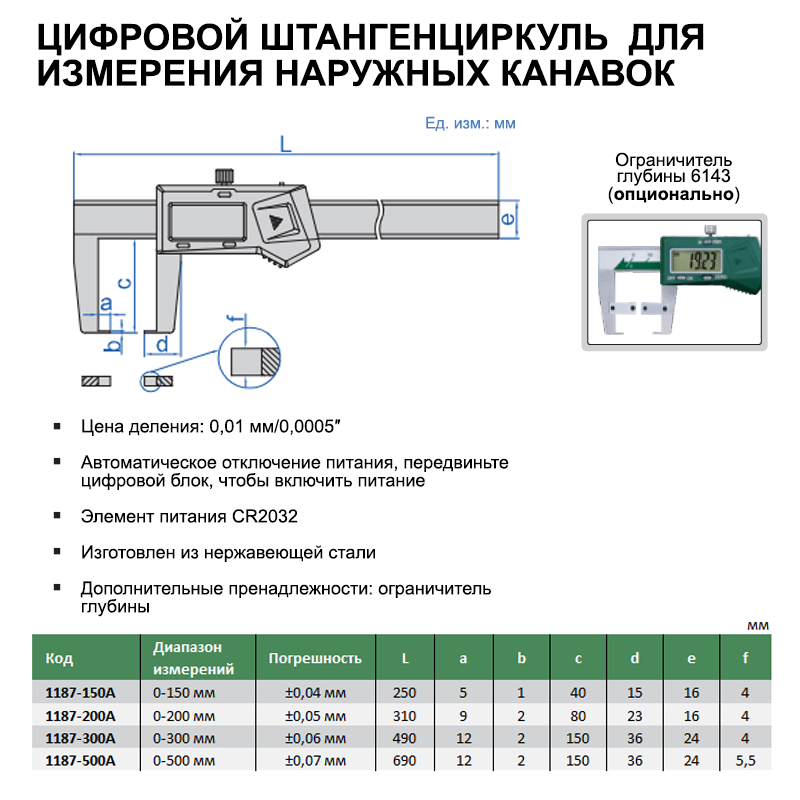 Штангенциркуль ШЦЦСК-150 0,01 мм для изм. наружных канавок