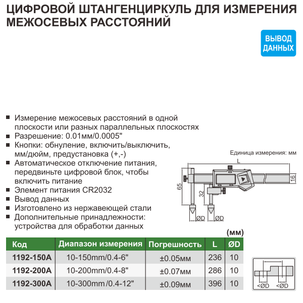 • Разрешение: 0,01мм