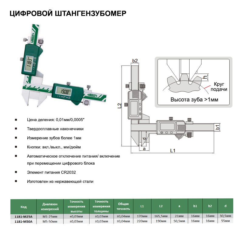 1181-M50A Штангензубомер ШЗЦ-М50 0.01 мм 40 000руб.