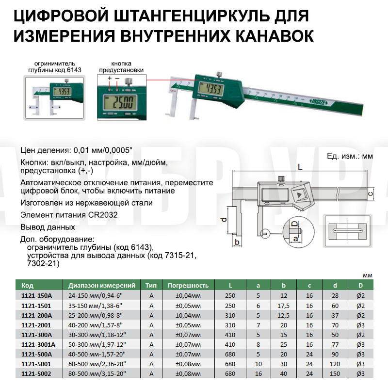 1121-3001A Цифровой штангенциркуль ШЦЦ-3-300 0,01мм для изм. внутренних канавок 40 540руб.