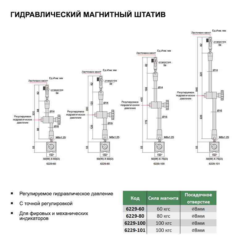 Магнитный штатив-545 100кгс, 8мм гидравлический