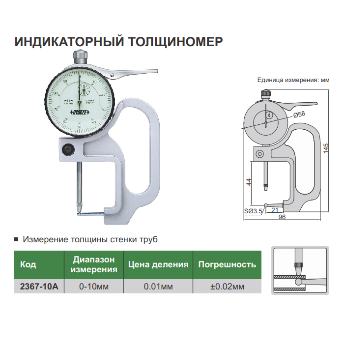 • Диапазон измерения: 0-10мм