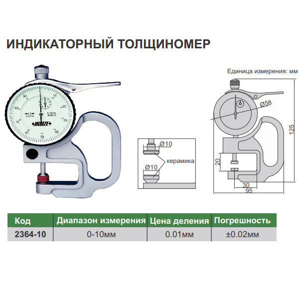 • Диапазон измерения: 0-10мм