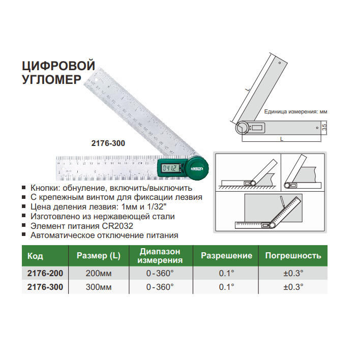 2176-300 Цифровые угломеры- 360° 0,1° (300 мм) 3 680руб.