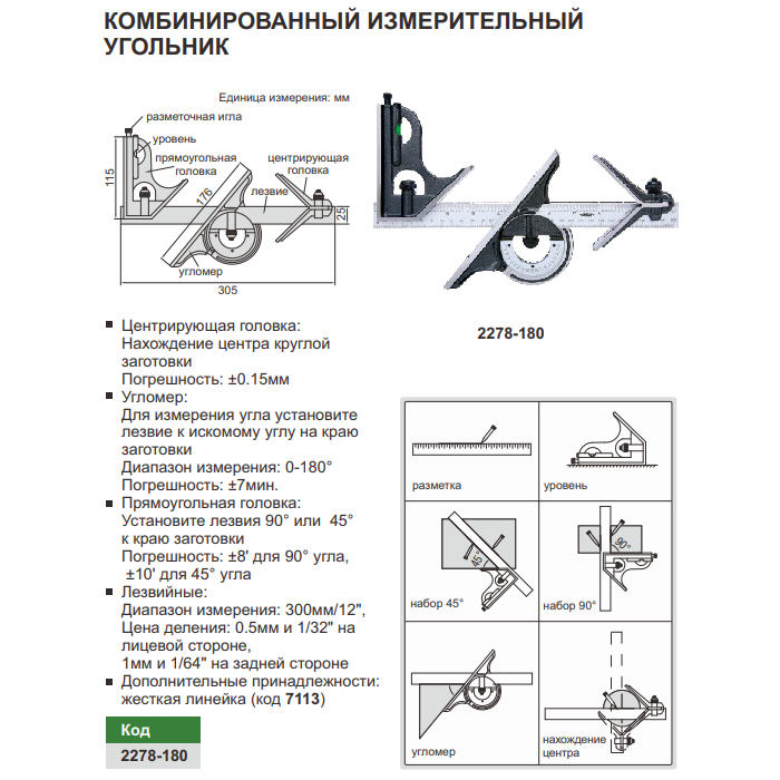 Комбинированный измерительный угольник-180