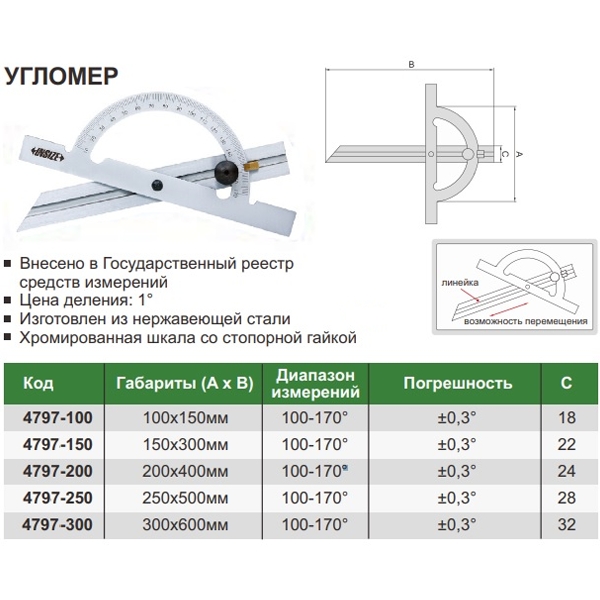 Угломер нониусный-170° (1°) 250х500